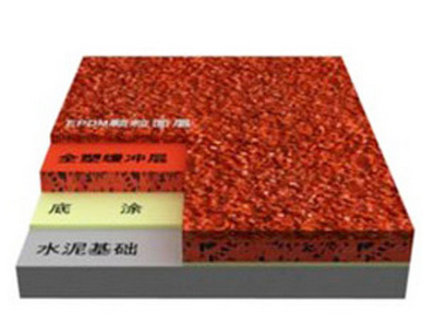 3、跑道面漆A料:面漆B料=1:3的比例(参加面漆总重量的1%的催化剂)搅拌均匀后,把1-2mmEPDM 颗粒和透气型面漆按照1:1的比例搅拌均匀,倒入喷涂机,喷枪倾斜至 60 度进行同向喷涂,待喷涂完毕保养 24 小时,相反方向再进行一次喷涂,面漆每平方参考用量1.2kg,EPDM颗粒每平方参考用量1.1kg,催化剂0.012kg,喷涂完毕后需固化保养24天。