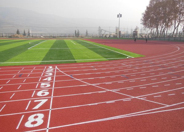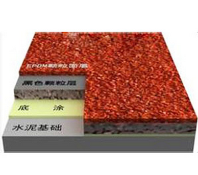 4、透气型跑道面漆A料:面漆B料=1:3的比例(参加面漆总重量的1%的催化剂)搅拌均匀后,把1-2mmEPDM 颗粒和透气型面漆按照1:1的比例搅拌均匀,倒入喷涂机,喷枪倾斜至 60 度进行同向喷涂,待喷涂完毕保养 24 小时,相反方向再进行一次喷涂,面漆每平方参考用量1.2kg,EPDM颗粒每平方参考用量1.1kg,催化剂0.012kg,喷涂完毕后需固化保养24天。